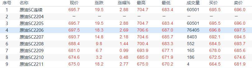 周一(4月18日)上海原油价格收盘上涨19.5元,涨幅2.88%。主力合约2205终盘收于695.7元/桶,涨19.5元/桶。油价收盘上涨,主要因为市场仍然当有俄罗斯原油出口受到限制,供给不平衡忧虑支持油价。