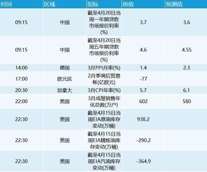周二(4月19日)美元指数创2020年以来新高至101.03,周二美元指数一度两年多来首次升穿101,尾盘升0.19%,报100.98。美债收益率持续攀升提振美元。美国指标10年期国债收益率周二触及2.93%,为2018年12月以来最高。10年期通胀保值债券(TIPS)收益率一度突破负值区间转正,为2020年3月以来首次。