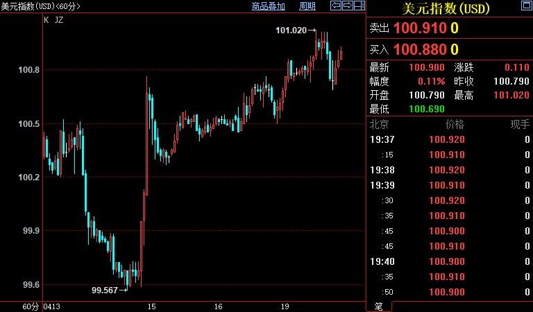 现货黄金隔夜录得3月11日以来新高1998.39美元/盎司,但终盘仅收高0.21%至1978.50美元/盎司。美元指数日内创2020年3月下旬以来新高至101.026,因市场对美联储加速收紧货币政策的预期继续为美元提供支撑。