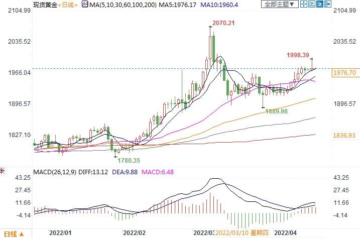 4月18日现货黄金盘中拉升后回落,最后收涨0.21%,报1974.24美元盎司,而且看起来仍然非常坚挺。黄金将突破每盎司2000美元,然后升向更高,现在看起来非常可能成为现实。
