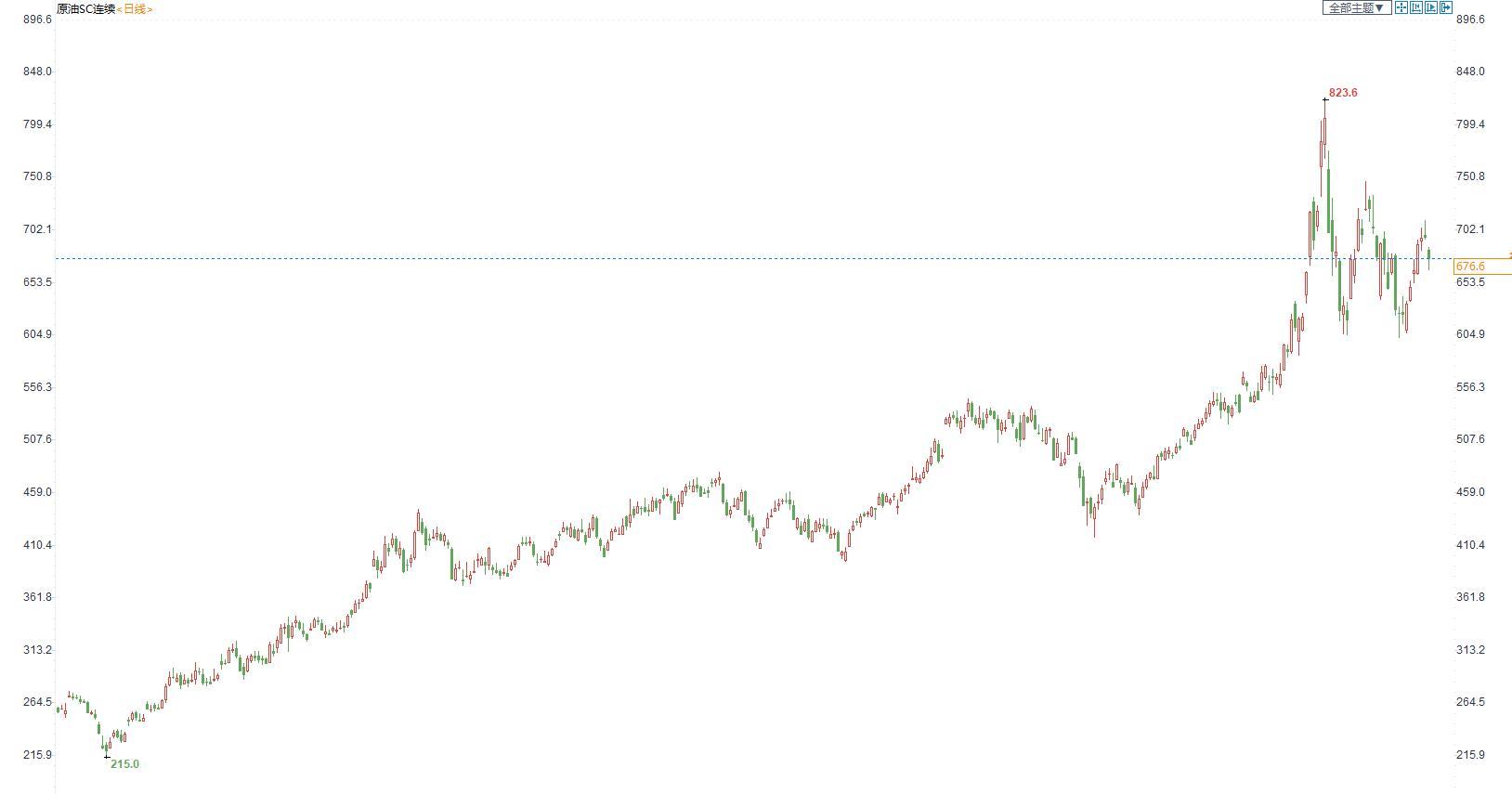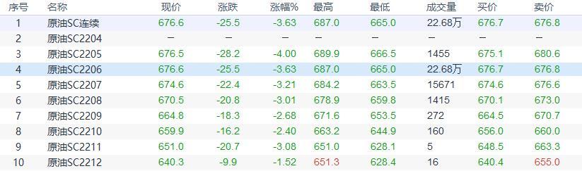 周三(4月20日)上海原油价格收盘下跌25.5元,跌幅3.63%。主力合约2206终盘收于676.6元/桶,跌25.5元/桶。油价收盘上小幅下跌,整体维持震荡格局。市场在全球原油需求下跌,和俄乌冲突造成的供应危机中,寻找平衡点。