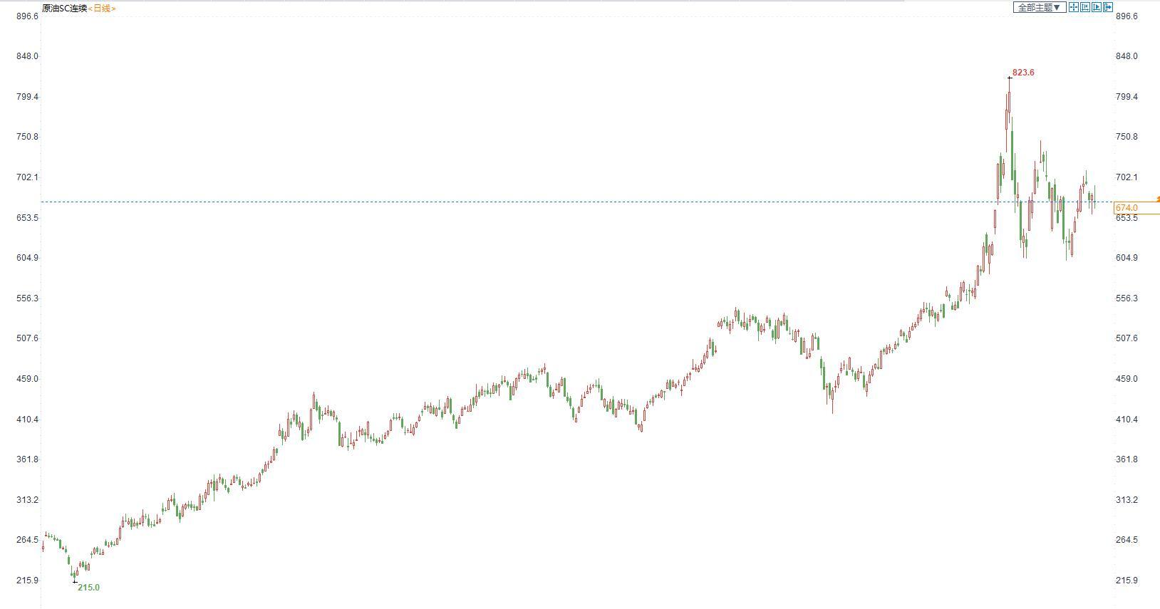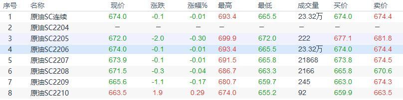 周五(4月22日)上海原油价格收盘微幅下跌0.1元,跌幅0.01%。主力合约2206终盘收于674.0元/桶,跌0.01元/桶。油价基本收平,整体维持震荡格局。油价多空因素较为均衡,上涨的推动因素主要有美国EIA原油库存大幅度下降,且地缘局势依然紧张。下跌的推动因素又,全球原油需求预期下降。