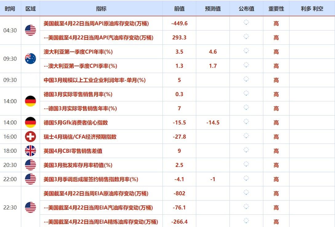4月25日-4月30日当周重磅资讯和数据前瞻
