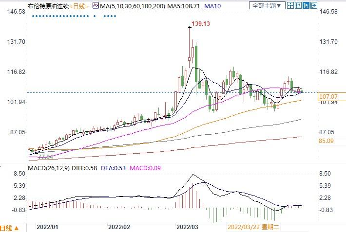 北京时间4月22日13:47 布伦特原油连续 报 107.07美元/桶
