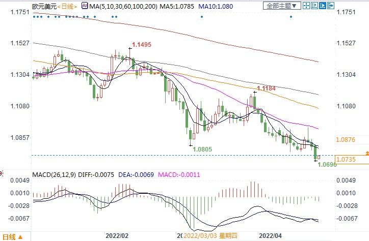 北京时间4月26日13:10 欧元兑美元 报 1.0735