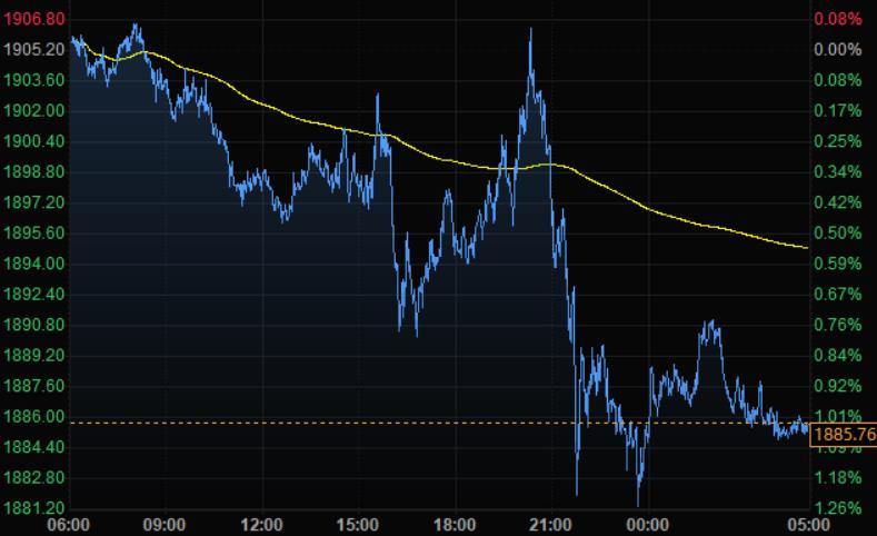 周三现货黄金跌逾1%,刷新2月24日以来低点至1881.20美元/盎司,因市场预期美联储将大幅收紧货币政策,美元因此上涨;现货白银下跌近1%,报每盎司23.27美元,稍早触及2月15日以来最低。