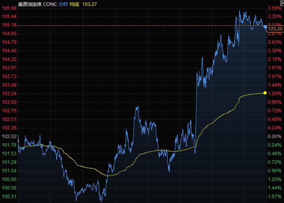 美油尾盘涨逾3%,至105.20美元/桶,欧盟禁止从俄罗斯进口石油的可能性似乎在上升,全球柴油供应紧张的加剧亦构成支撑。油价此前上下震荡。德国准备分阶段停止购买俄罗斯石油,为欧盟禁止进口俄罗斯石油扫清障碍。周四的最新报道进一步推动价格上涨。