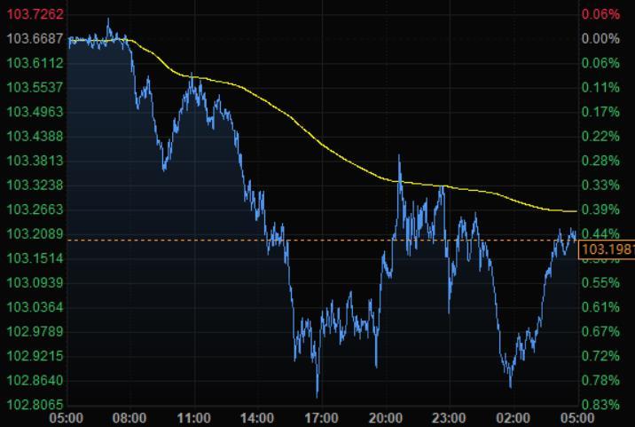 美元指数尾盘下跌0.45%至103.19,令月度涨幅有所收窄,技术指标或许暗示短线见顶。在有报道称俄罗斯动用美元储备偿付债券之后,美元短暂试探盘中低点,不过波动率下降帮助限制了震荡区间。