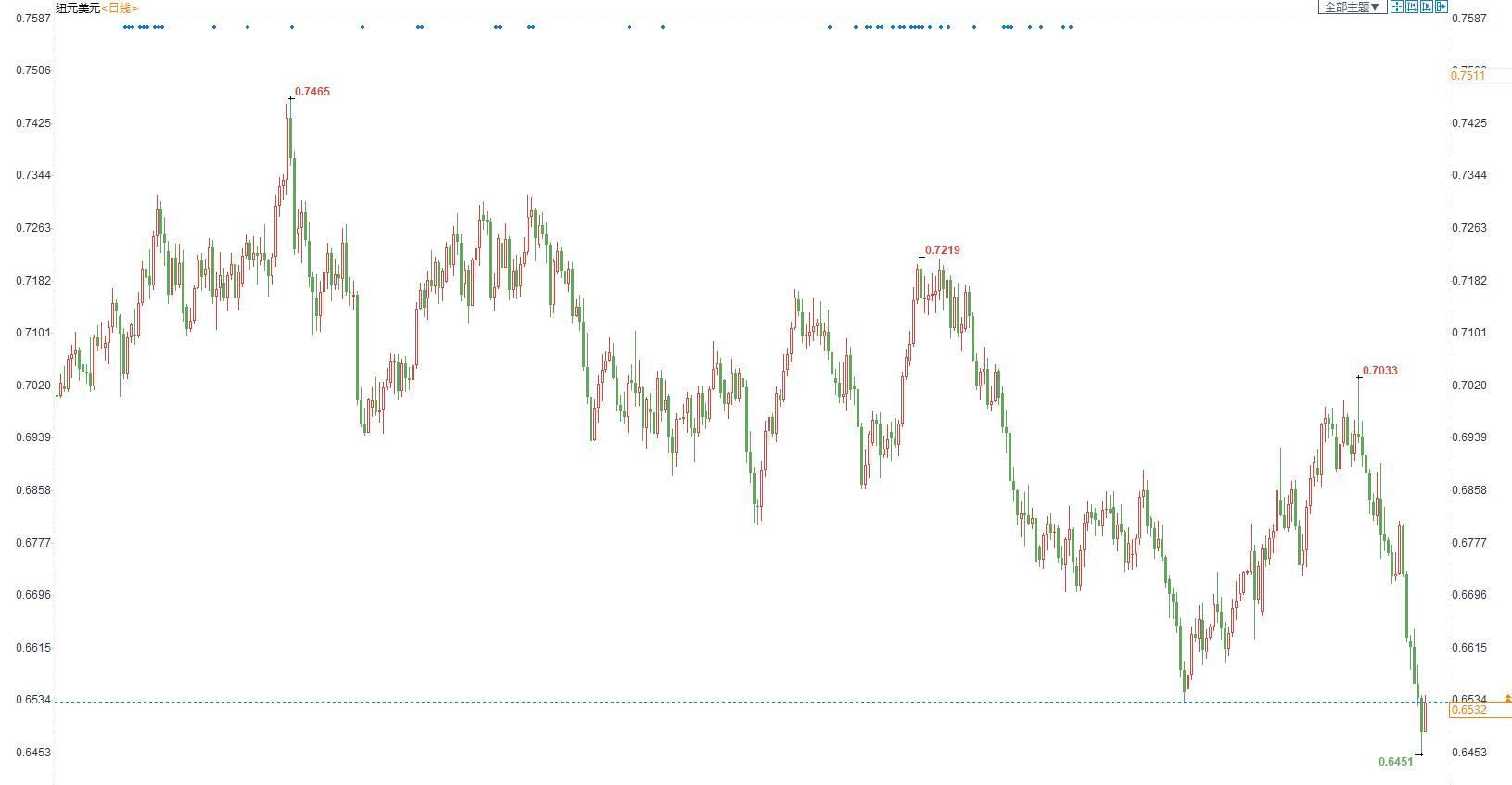 纽元兑美元本周震荡下挫,主要受累于强势美元,但新西兰联储的紧缩预期限制了纽元下跌