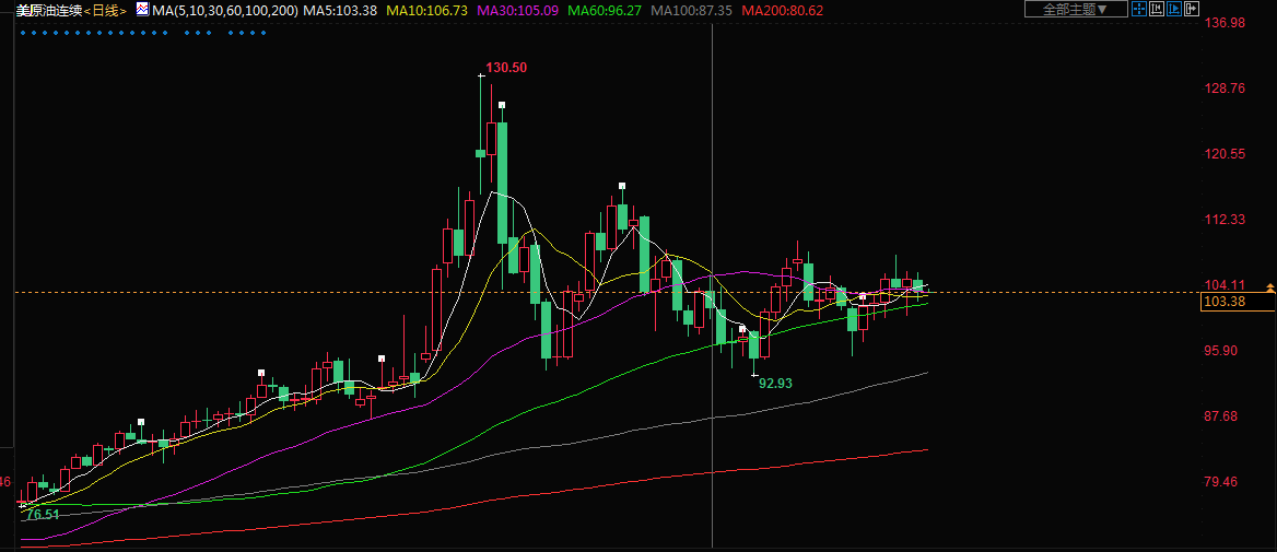周三(5月4日)亚洲时段,美油现报103.42美元/桶;油价周二下跌超1%,疫情引发的需求担忧盖过了欧洲可能对俄罗斯实施原油禁运的影响,此外,伊朗与美国通过交换书面信息方式进行伊核谈判。