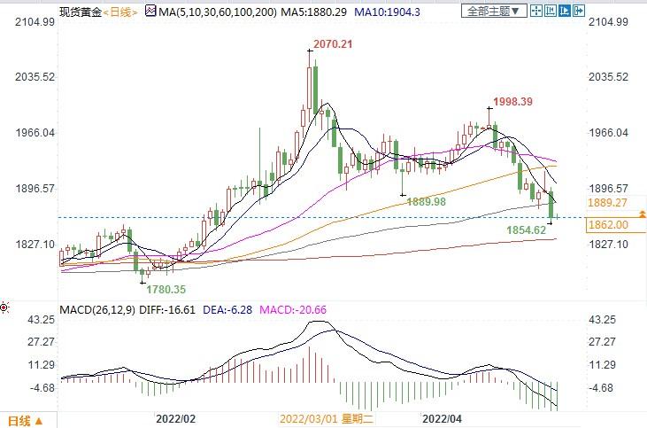 北京时间5月3日10:36 现货黄金 报 1862美元/盎司