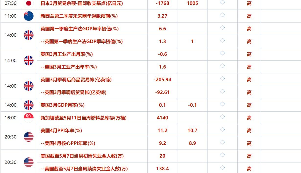 5月9日至5月13日重要数据和大事前瞻