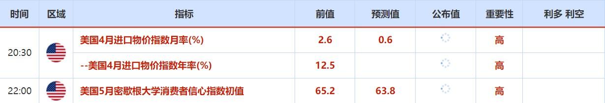 周五(5月13日)关键词:美国4月进口物价指数,明尼阿波利斯联储主席卡什卡利