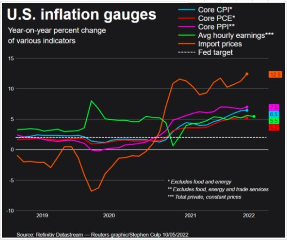 剔除波动较大的食品和能源价格之后,核心CPI预计将从3月的6.5%降至6.0%,但仍远高于美联储2%的通胀目标。