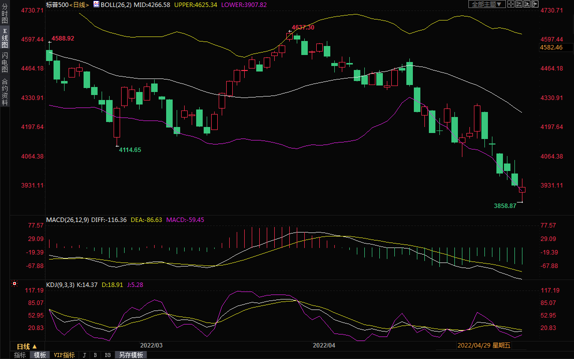 美国三大股指均在上日收盘点位上下来回波动,标普500指数在1月3日触及历史高位,目前距离确认进入熊市仅咫尺之遥。