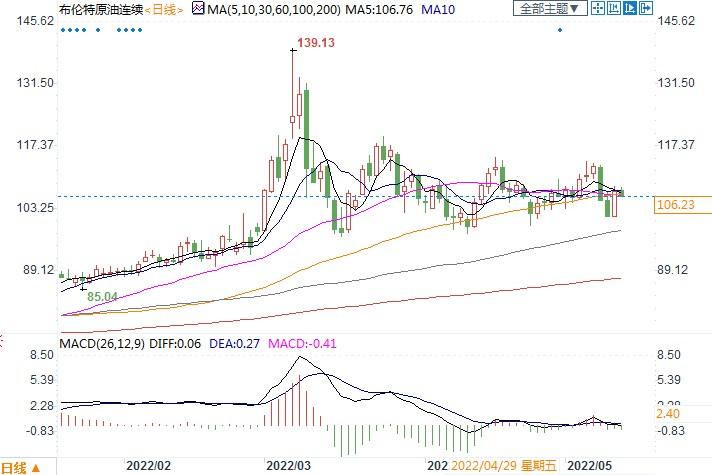 北京时间5月12日13:10 布伦特原油连续 报 106.23美元/桶