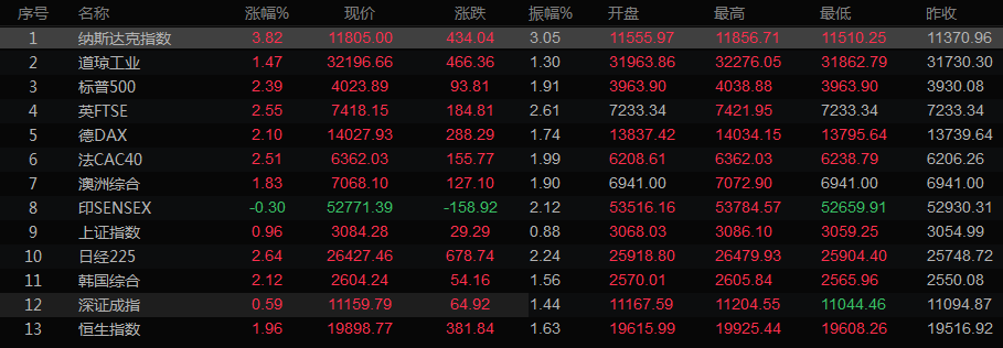 全球主要市场行情一览