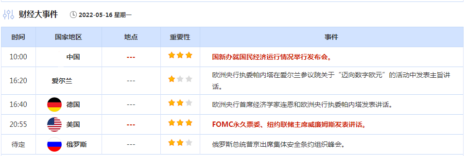 5月16日财经早餐:金价低位徘徊,受强势美元压制;俄乌局势担忧升温,油价高开创近一个半月新高
