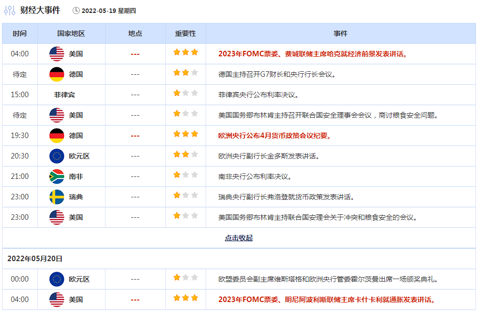 ①美国费城联储主席哈克周三表示,他预计美联储将再进行两次50个基点的加息,随后转为单次加息25个基点,直到通胀“祸根”被击退。