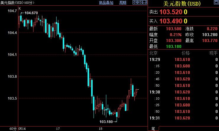 周三(5月18日),现货黄金续走低,因美元指数在连跌三个交易日后止跌反弹,美联储主席鲍威尔在美联储努力对抗通胀飙升之际展现出更为强硬的姿态,另有官员对经济前景大唱赞歌。