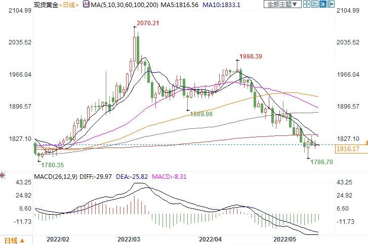 北京时间5月19日12:37 现货黄金 报 1816.17美元/盎司