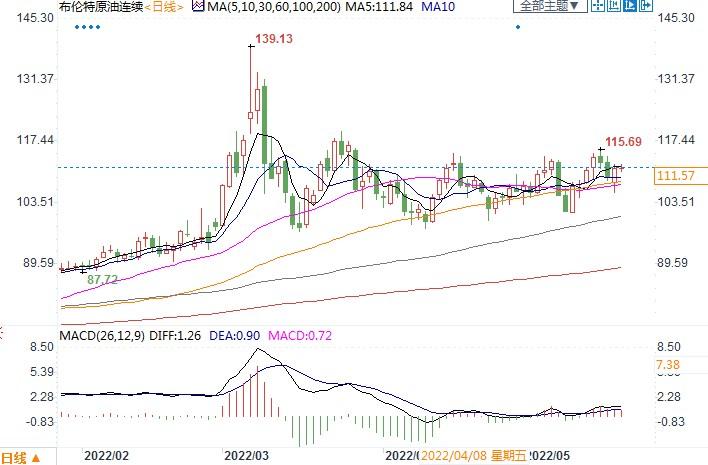 北京时间5月20日13:51 布伦特原油连续 111.57美元/桶