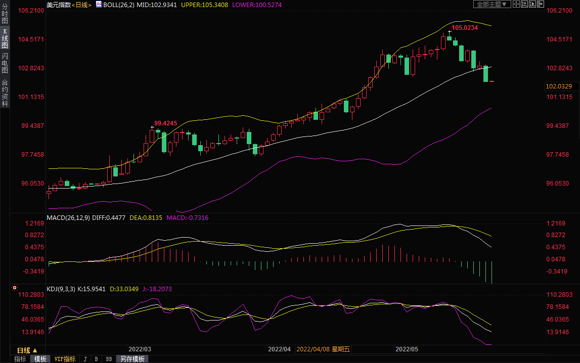 美元指数周一收跌0.92%,收报102.07,5月13日曾触及20年高点105.01。