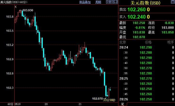 北京时间20:25,现货黄金上涨0.91%至1862.33美元/盎司;COMEX期金主力合约上涨1.04%至1861.3美元/盎司;美元指数下跌0.75%至102.26。