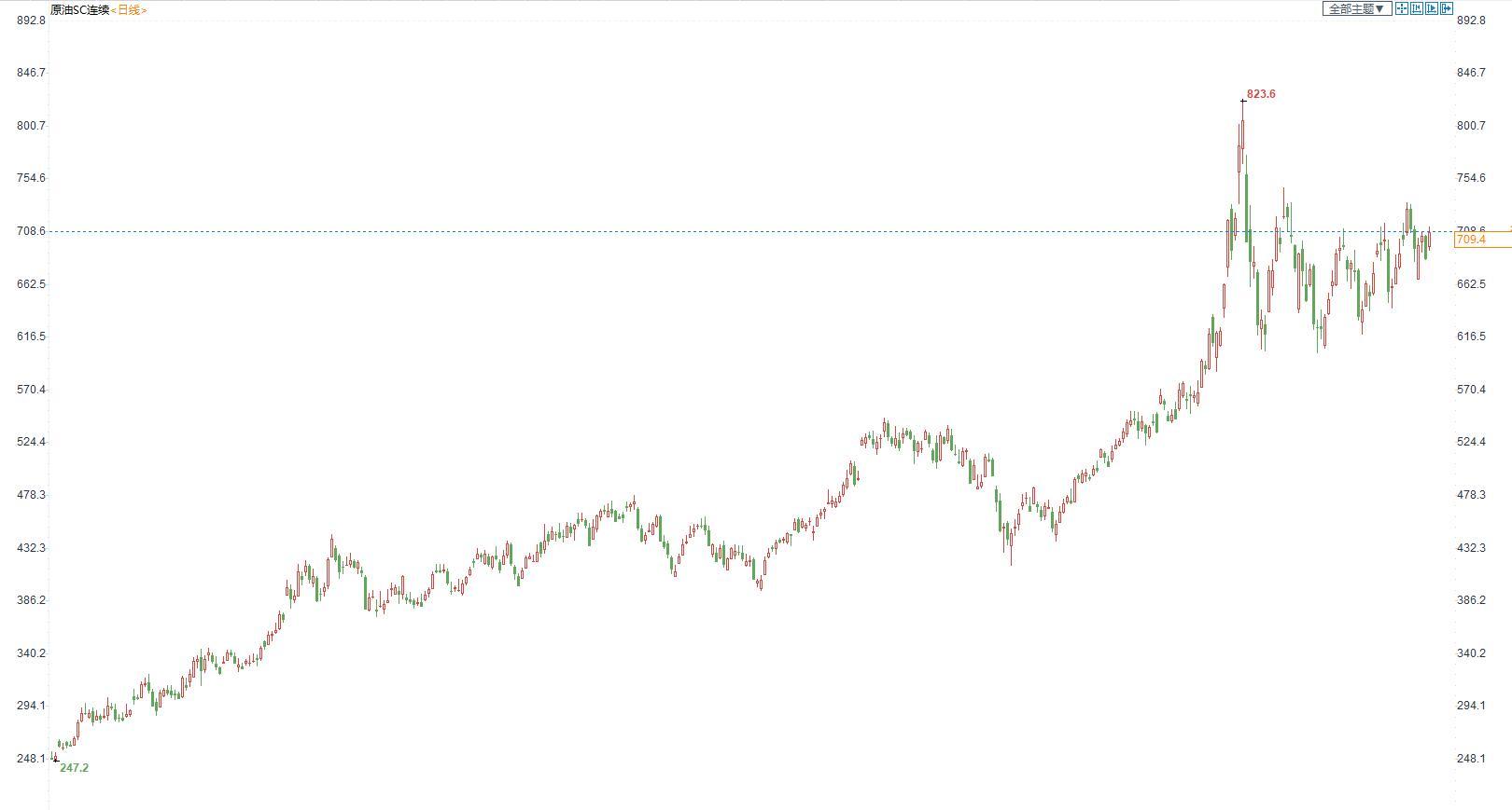 期货市场,布油小幅收涨,目前稳站日内均线之上,国内SC2207合约涨超3%,收盘价709.4。宏观方面,目前俄乌局势处于僵持阶段,短时间内欧盟对俄罗斯的能源制裁暂时告一段落了,短期建议关注关税政策的调整。供给方面,美国能源部发布从战略石油储备中出售原油的额外通知,出售战略石油储备中至多达4010万桶的原油,此次出售属于拜登总统3月31日宣布释放原油储备的一部分。库存方面,今日公布的API库存数据显示,原油库存小幅增加,但是汽油库存大幅下降,且库欣原油再次下降,侧面说明美国需求比较强劲。