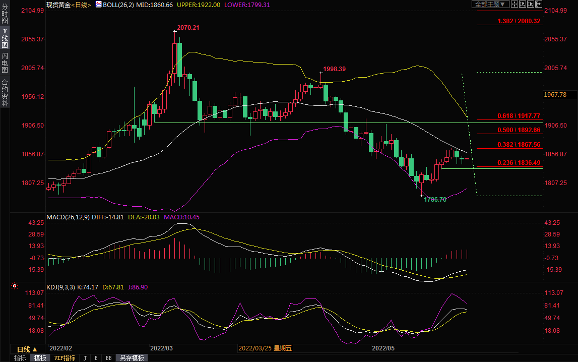 金价周四微跌0.15%,盘中一度跌至1840关口附近,收报1850关口附近,美联储激进的货币政策收紧计划削弱了黄金的吸引力,且股市反弹令压力加剧。但后来市场对美联储过度加息的担忧情绪降温,美元回落近一个月低位附近,又吸引逢低买盘支撑金价。美国黄金期货结算价上涨0.07%,报1,847.6美元。