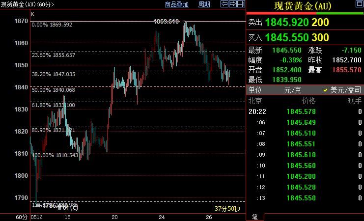 交易商GoldSilver Central的董事总经理Brian Lan表示,美联储承诺继续加息对黄金造成了一些影响,随着消息传出,前期部分涨势被抹去,价格可能跌至1820美元左右。