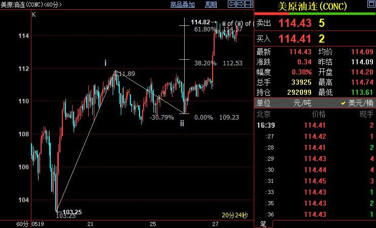 北京时间16:40,NYMEX原油期货上涨0.30%至114.43美元/桶;ICE布伦特原油期货上涨0.57%至118.07美元/桶。