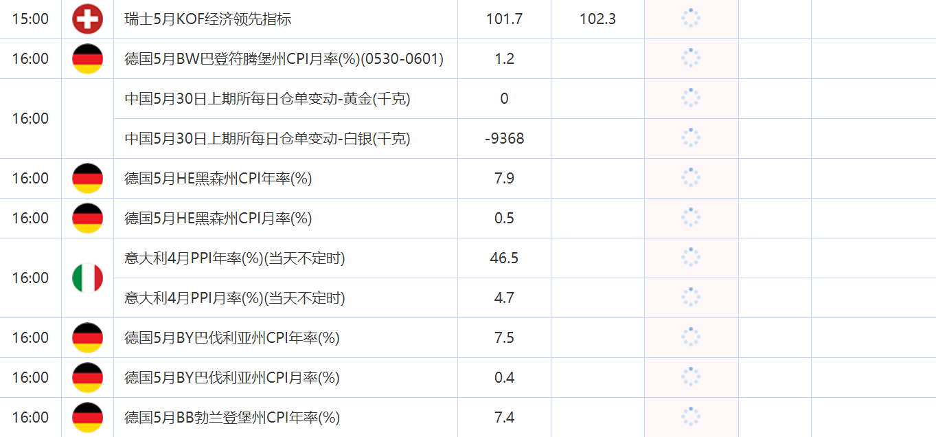 16:00 德国5月BW巴登符腾堡州CPI月率(%)(0530-0601) , 前值 1.2 , 预期值 -- , 公布值:待发布