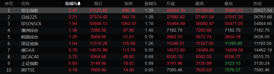 全球主要市场行情