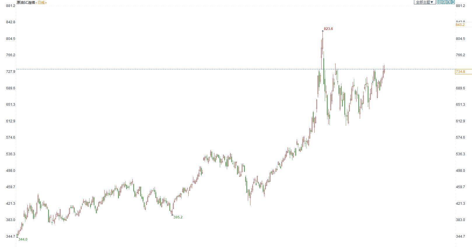 INE原油收盘小幅上涨,原油供应短缺,需求增加支持了油价