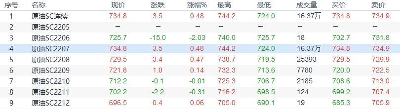 周一(5月30日)上海原油价格收盘上涨3.5元,涨幅0.48%。主力合约2207终盘收于734.8元/桶,涨3.5元/桶。油价收盘上涨,主要因原油市场因为俄罗斯出口减少的担忧导致需求紧缺,同时美国迎来夏季原油需求旺季,美国人驾车出行需求增加,中国原油需求也增加,支持了油价。油价维持震荡上行的走势中。