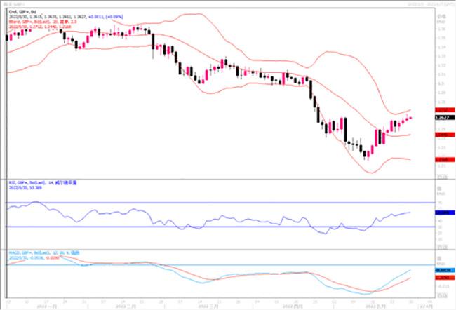 英镑兑美元上周震荡回升,主要受益于美元走软,但上周市场对英国央行谨慎升息的预期升温限制英镑上涨。上周英国公布的制造业和服务业数据表现不佳。分析师指出,5月份的英国服务业和制造业的数据显示,英国经济出现严重的放缓迹象。由于受到成本上升等因素的影响,英国的经济活动几乎停滞。甚至有分析师认为,二季度英国经济会陷入负增长。随着供应链、劳动力短缺等因素的影响,通胀形势可能还会恶化。英国经济陷入滞涨危机,这也使得英国央行陷入两难。该行需要进一步收紧货币政策,以应对日益严重的通货通胀,但同时也担心过快的行动会为英国经济带来衰退风险。英镑上周五震荡过后继续续走高,日线报收上下影线小阳线,反弹动能未见减弱迹象。结合4小时图来看,布林中轨偏上,MACD零轴上方运行,下方首要支撑1.2560-70,第二支撑1.2520,上方阻力1.2670,1.2720-30,第一支撑在没有下破前提下,短线有望继续测试第一阻力。