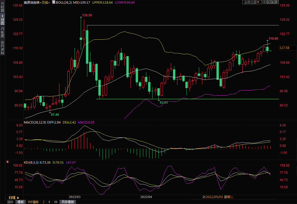 美国原油收于每桶114.67美元,较上周五收盘下跌0.40美元,跌幅0.4%。盘中早些时候曾触及119.98美元,为3月9日以来的最高水平。周一是美国阵亡将士纪念日,所以没有结算价。