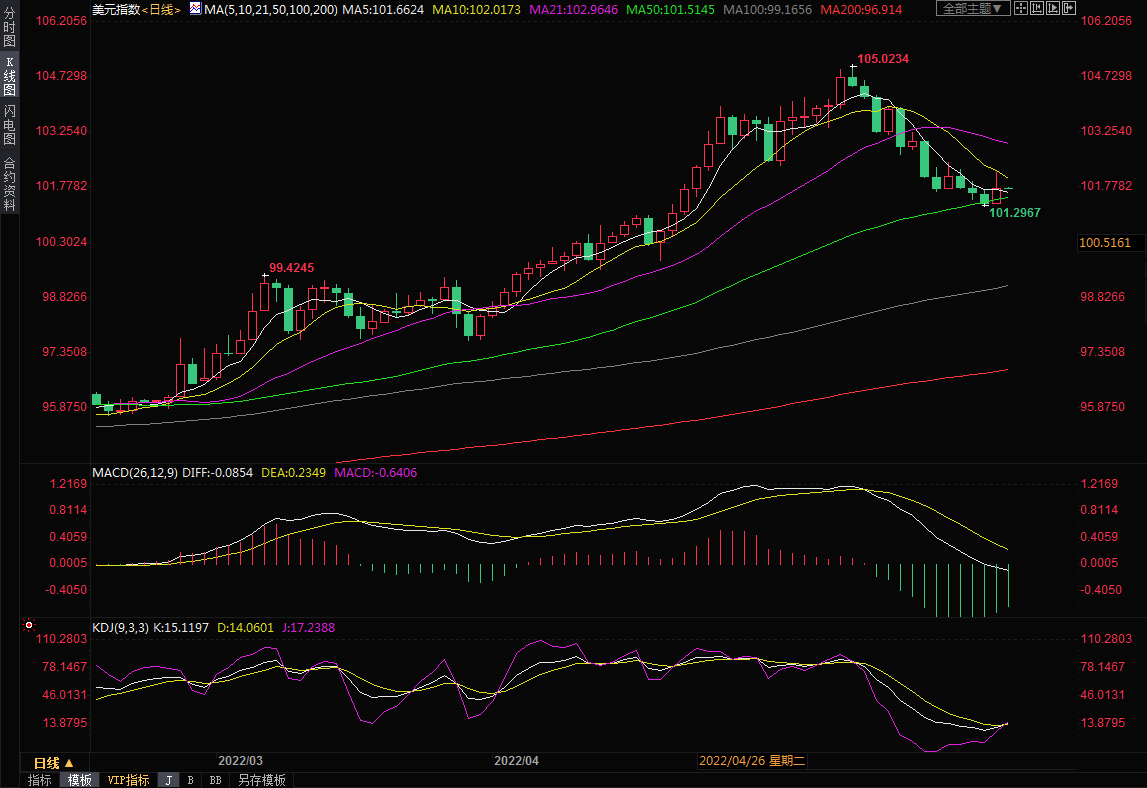美元指数自2月中旬以来一直未收于50日移动均线下方,但在过去几个交易日向50日移动均线逼近。