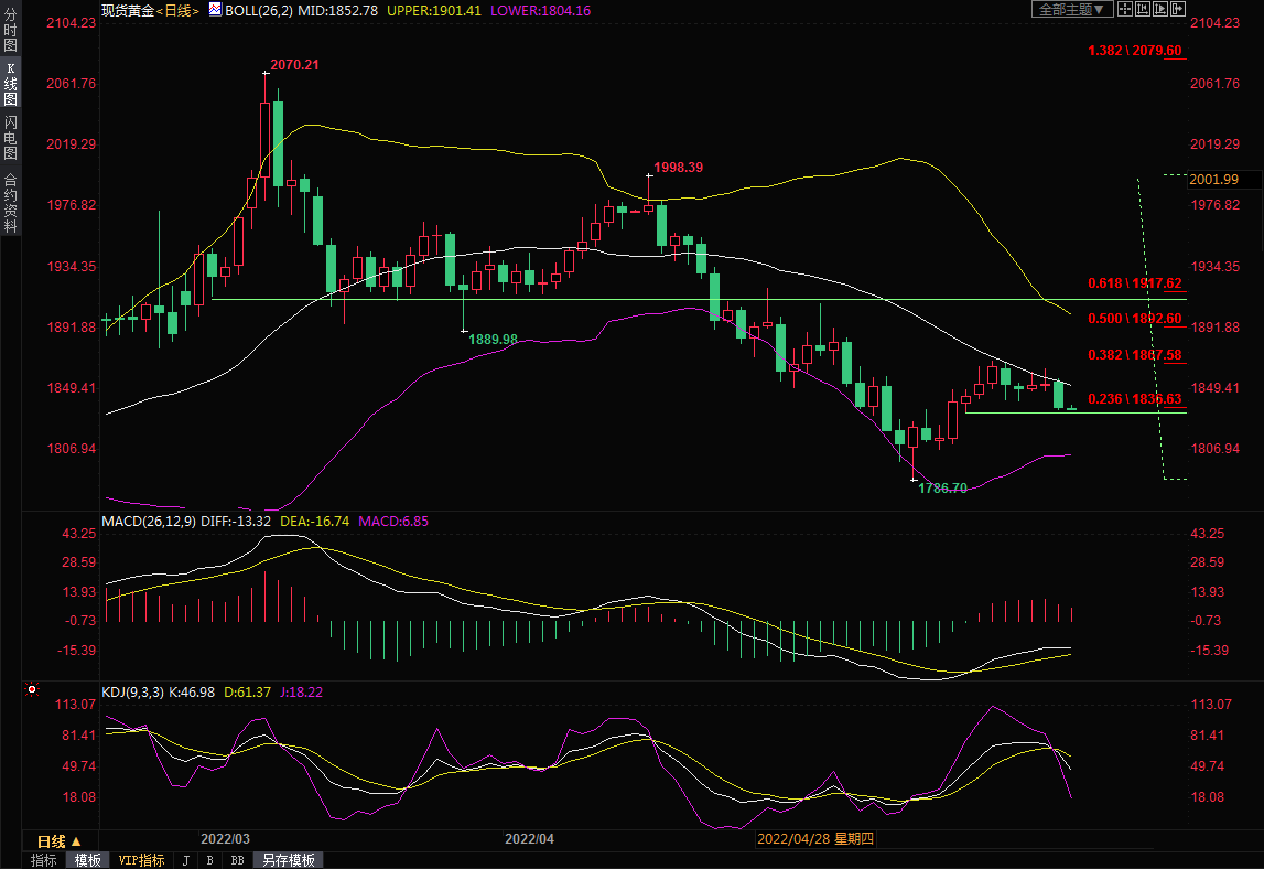 现货黄金5月下跌3.14%,创下去年9月以来的最大跌幅,也是连续两个月月线收跌。美国黄金期货收跌0.5%,报每盎司1,848.4美元。