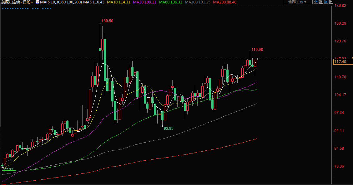 周五(6月3日)亚洲时段,美油现报117.40美元/桶;油价周四上涨2.4%,因在燃料需求旺盛之际,美国原油库存降幅超过预期。油市未受OPEC+同意增加原油产量以弥补俄罗斯产量下降的消息影响。