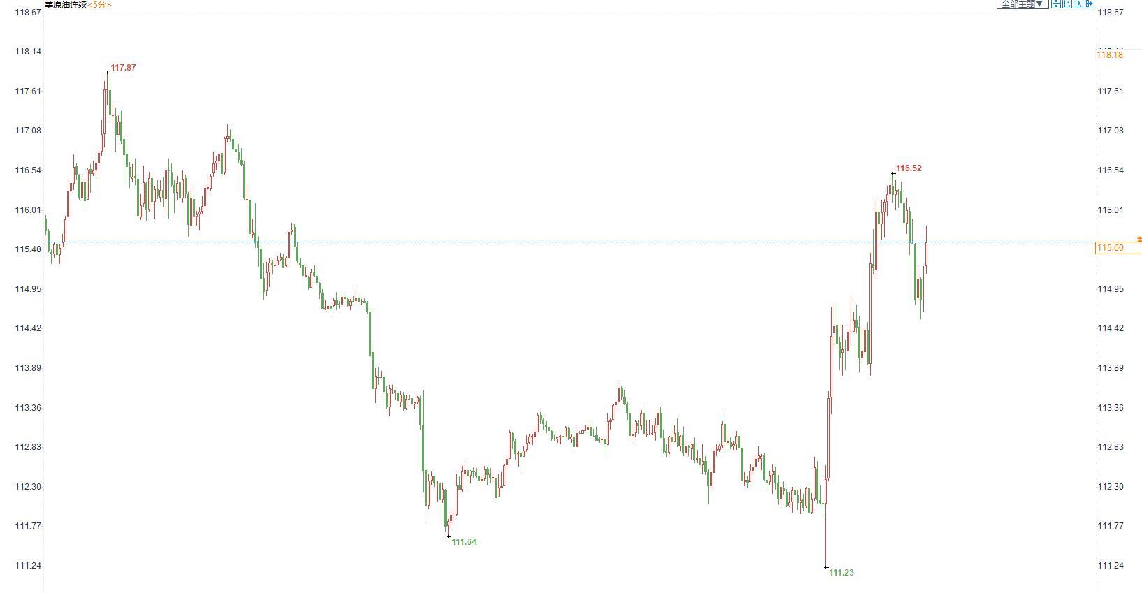 美国原油价格5分钟图显示