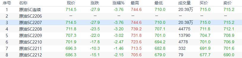 阻力位:INE原油730.0,美油109.5