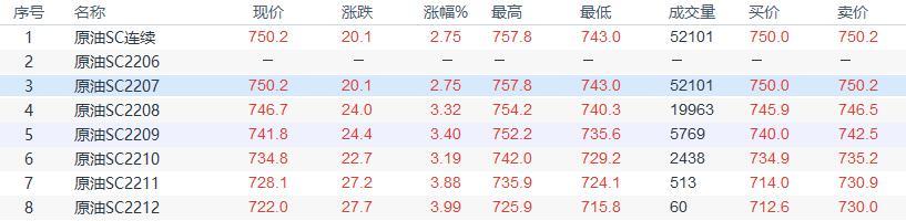 周一(6月6日)上海原油价格收盘上涨20.1元,涨幅2.75%。主力合约2207终盘收于750.2元/桶,涨20.1元/桶。油价收盘上涨,主要因沙特上调了亚洲原油价格,美国夏季出行和中国疫情缓和都增加了原油需求,使得供应依然趋紧,支持油价。不过,全球经济增长下滑的担忧情绪,依然限制油价走高。