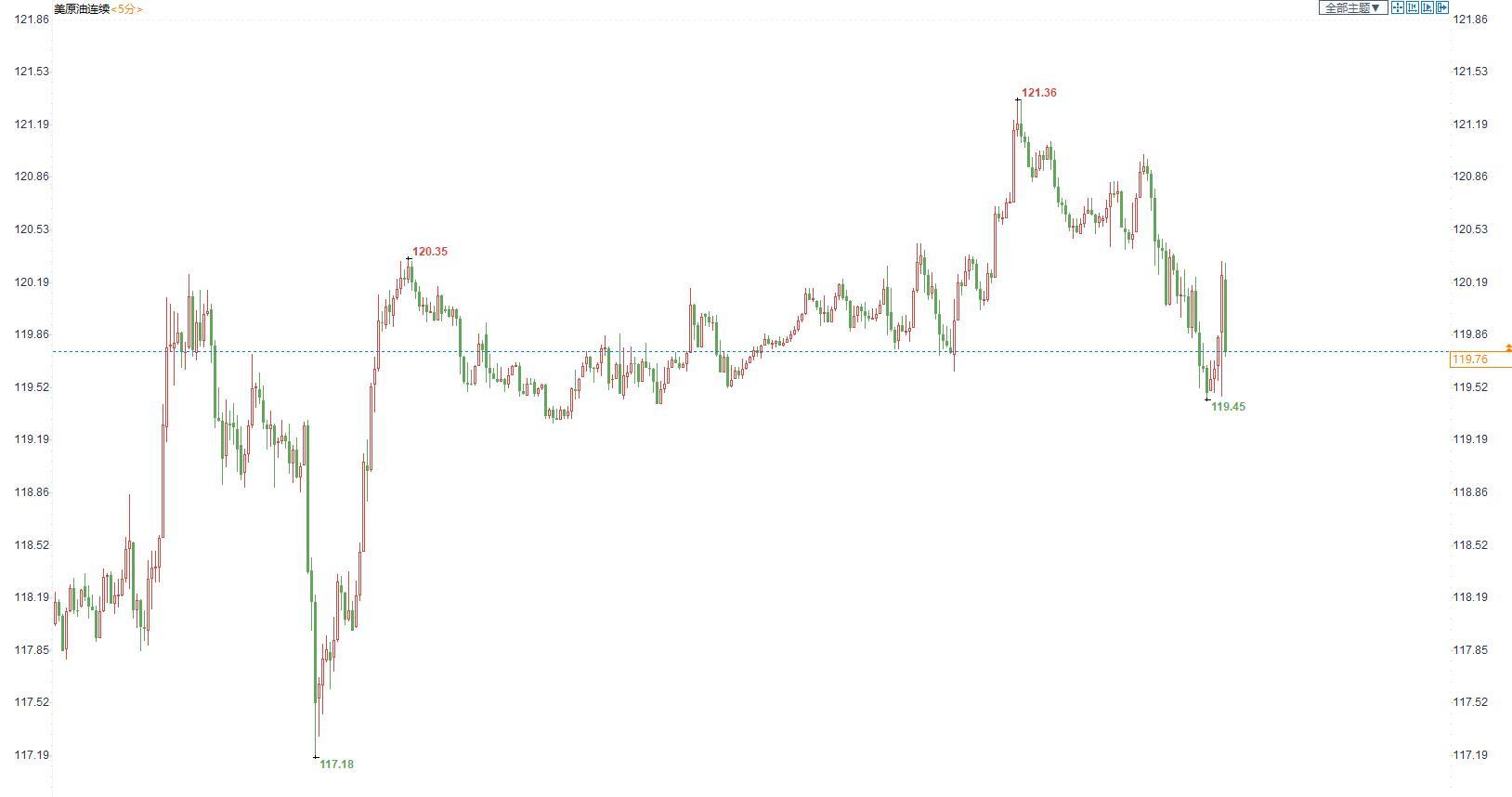 美国原油价格5分钟图显示