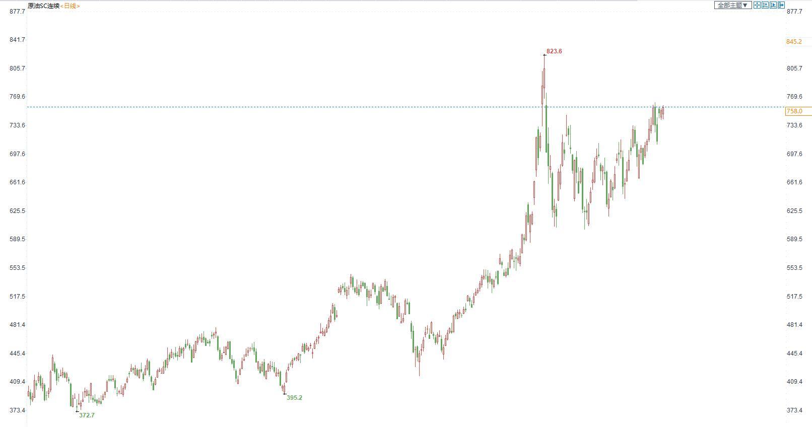 (INE原油日线图)