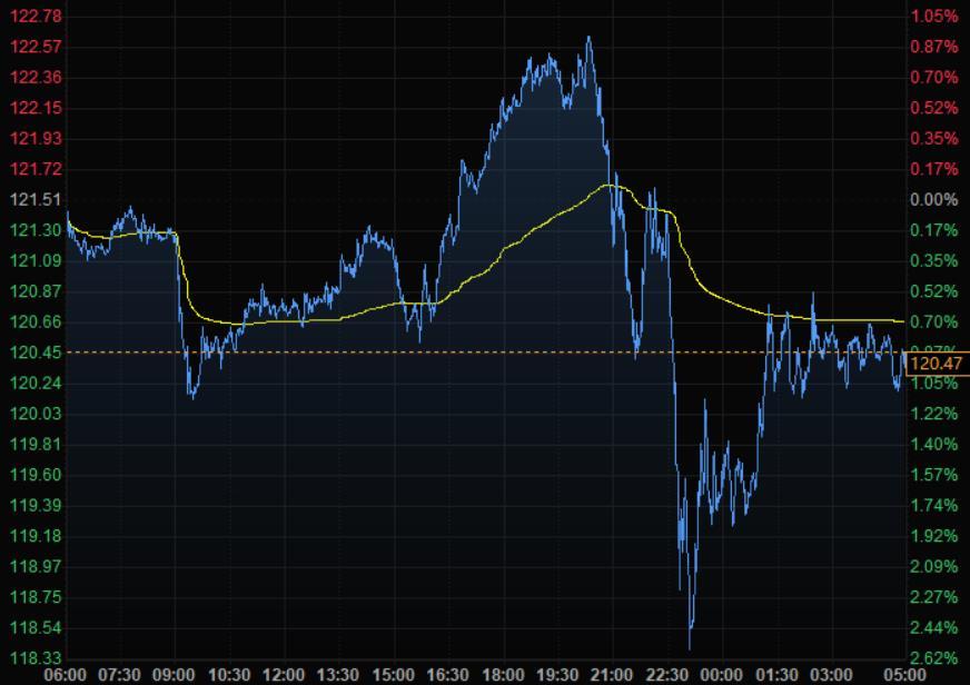 商品收盘方面,COMEX 8月黄金期货收涨1.2%,报1875.50美元/盎司,本周累计上涨1.4%。WTI 7月原油期货收跌0.84美元,跌幅0.69%,报120.67美元/桶,本周累计上涨1.51%;布伦特8月原油期货收跌1.06美元,跌幅0.86%,报122.01美元/桶,本周累计上涨约1.80%。
