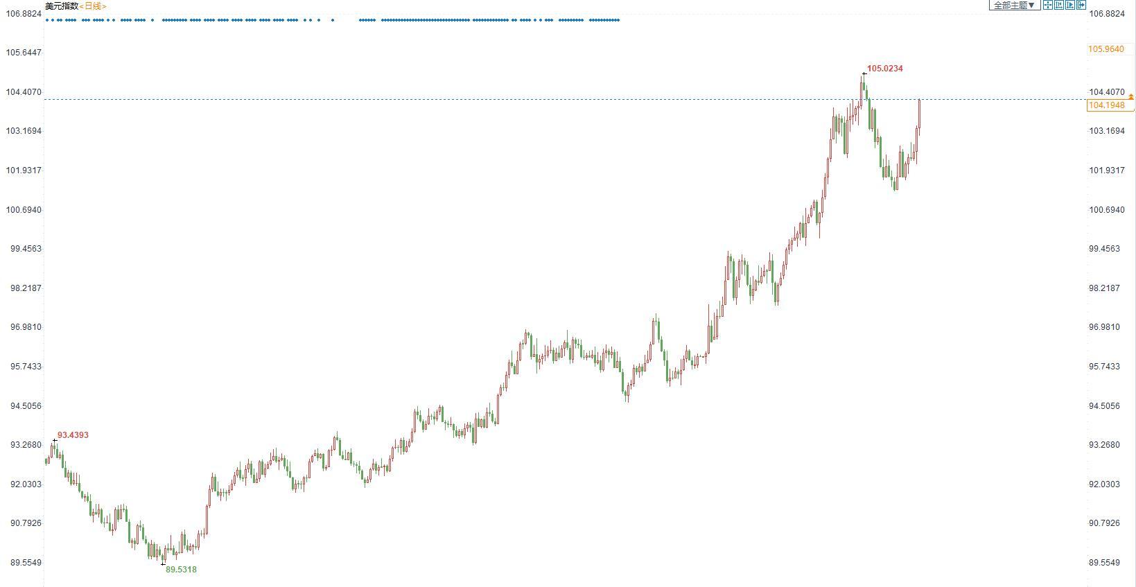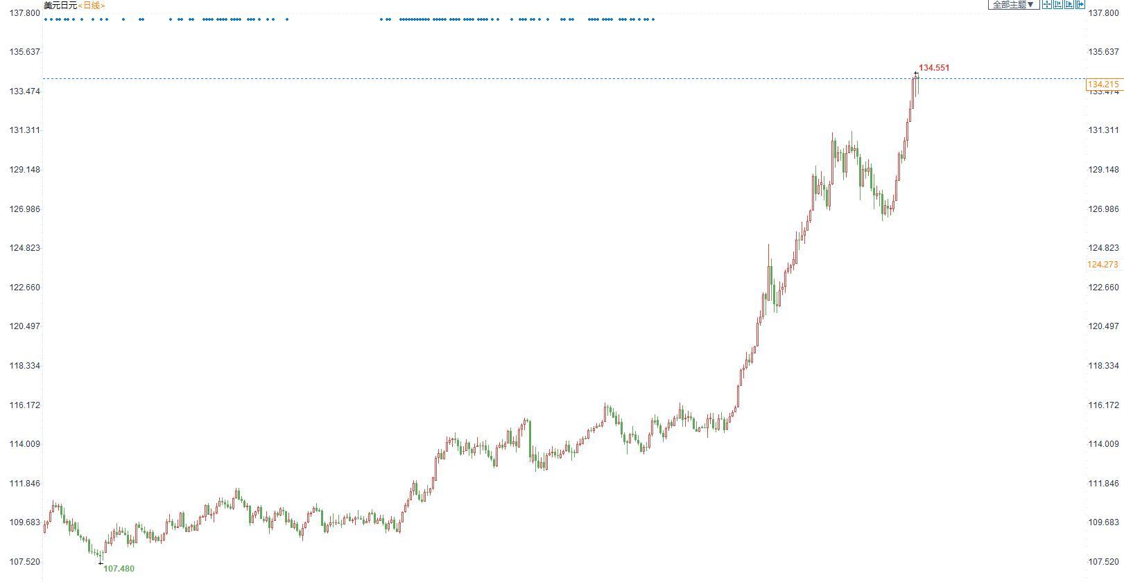 纽交所交易员安德森Timothy Anderson表示,自美联储去年11月发出强烈鹰派信号,美元便开启狂涨行情。今年3月联储兑现承诺,启动2018年来的首次加息,更高的利率意味着更高的美元资产回报,这就吸引全球资本,为美元提供上行动力。此外,乌克兰局势打压了欧洲货币,给美元提供了支撑。任何以美元计价的资产在全球市场上都变得更加昂贵,值得留意的是,一些跨国企业在这个财报季已经给出指引,称美元进一步走强将对其未来收益构成压力。