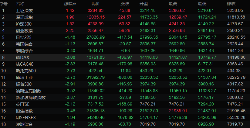 全球主要市场行情一览
