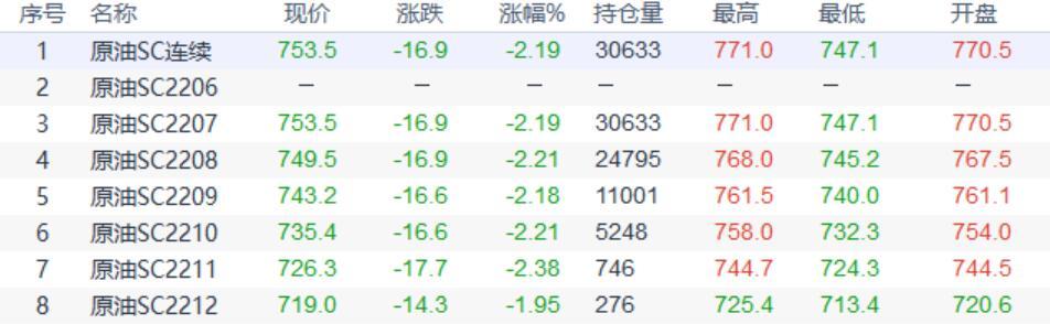 周一(6月13日)上海原油价格收盘下跌16.9元,跌幅2.19%。主力合约2207终盘收于753.5元/桶,跌16.9元/桶。油价收跌,主要因在全球利率抬升的背景下,全球经济放缓的担忧,打压原油前景,给油价短期回调压力。